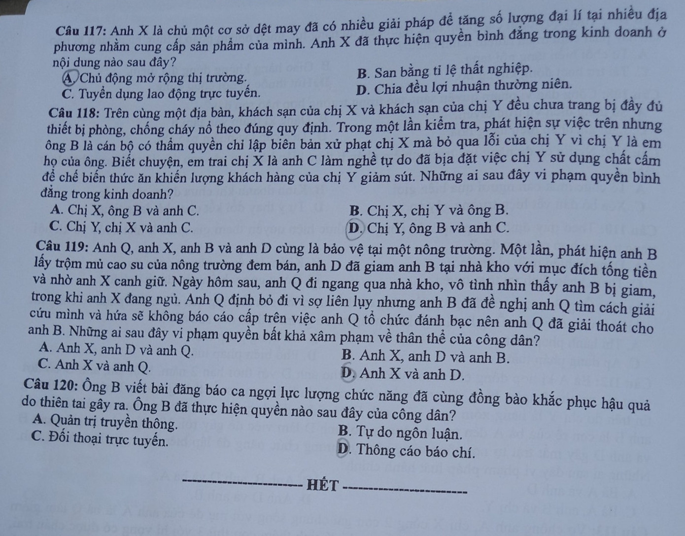 Cụ thể, câu 117, mã đề 310 có nội dung như sau:
