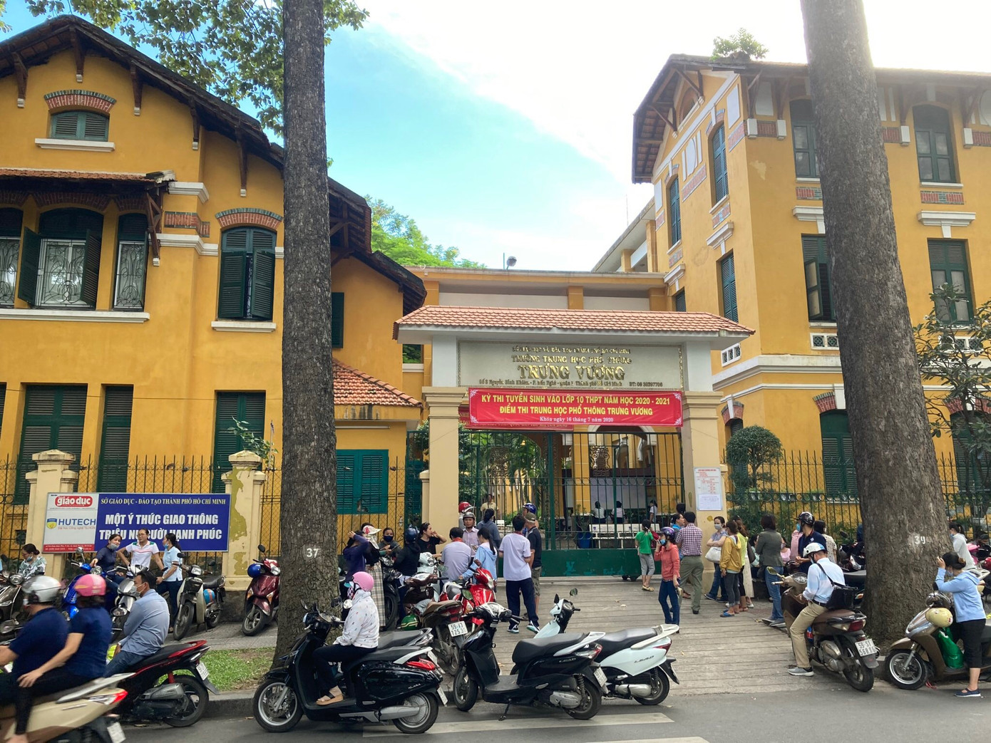 Các bạn học sinh tại hội đồng thi THPT Trưng Vương - Ảnh: Bảo Ngọc