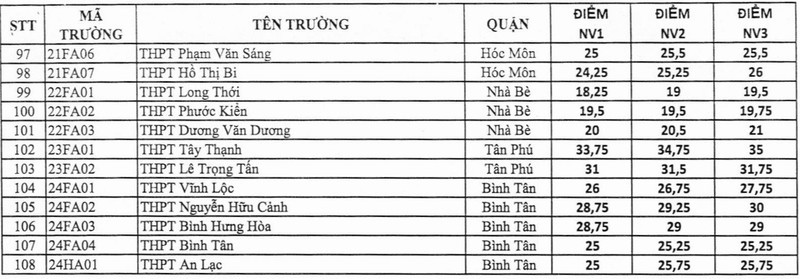 Điểm chuẩn tuyển sinh lớp 10 TP.HCM năm học 2020 - 2021 trang 2