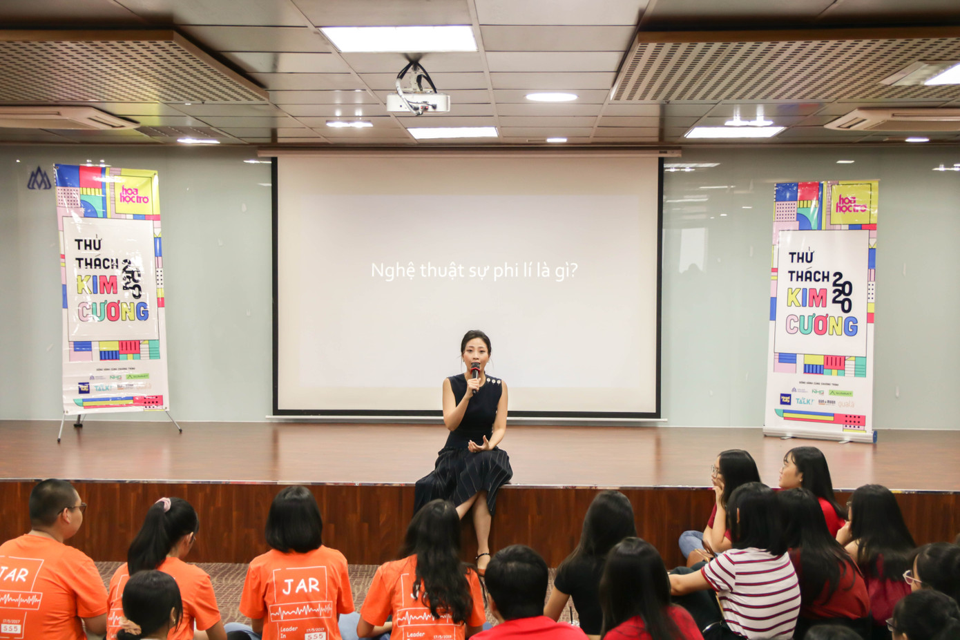 Đến với lớp học như một “lớp trưởng”, MC Liêu Hà Trinh biến hội trường thành một rạp chiếu phim mini vô cùng ấm cúng. Qua giọng kể chuyện “mượt như tơ” cùng phong thái đúng chất Chuyện đêm muộn, chị Trinh đã truyền tải nghệ thuật của sự phi lý và bài học về sự nhận thức về chính mình và những điều xung quanh.