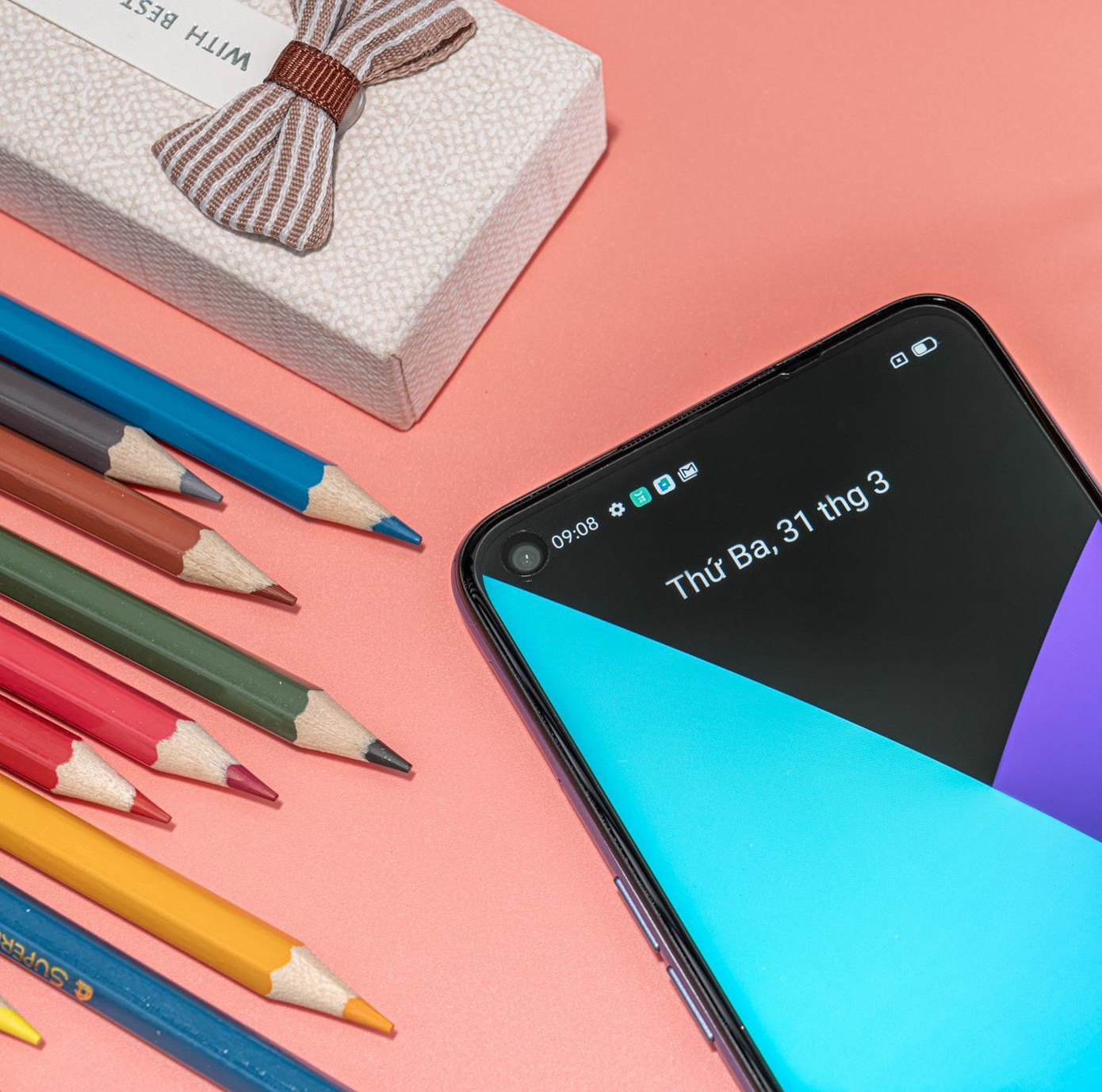 Realme 6 gây ấn tượng bởi thiết kế với màn hình “nốt ruồi” thời thượng tương tự như các sản phẩm cao cấp gần đây. Kiểu thiết kế này giúp tỷ lệ màn hình trên mặt trước của Realme lên đến 90,5%.