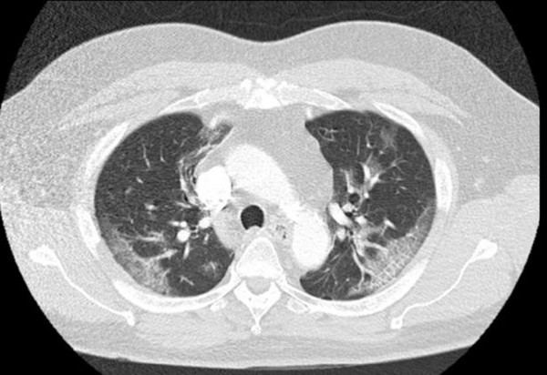 Hình chụp phổi cho thấy trong phổi của ông có những vết mờ đục như thủy tinh vỡ vụn. Bởi vậy, ông được cách ly và xét nghiệm COVID-19. Sau đó, thân nhiệt của ông tăng lên 38,4oC.