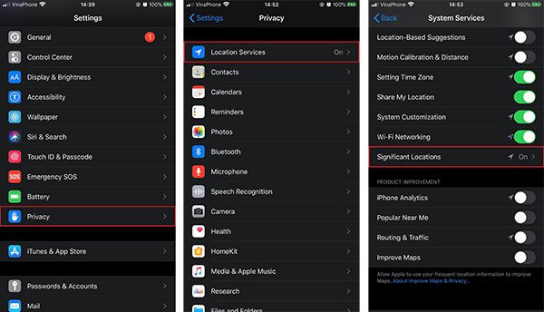 Tính năng này hơi khó tìm một chút vì nó ẩn dưới rất nhiều lớp menu. Hãy và Settings > Privacy > Location Services > System Services > Tắt Significant Locations.