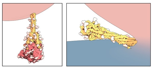 Dùng kính hiển vi điện tử cryo-EM, Tiến sĩ Bing Chen và các đồng nghiệp ở Viện Nhi Boston (Mỹ) đã chụp được protein gai ở cả hai hình dạng - trước và sau khi kết hợp với tế bào.