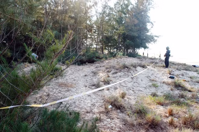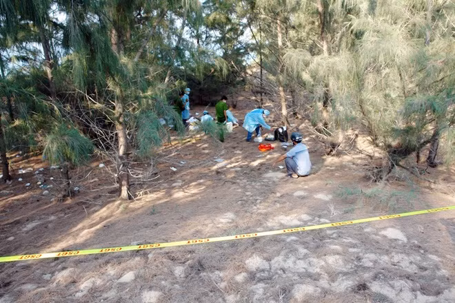 Sáng 7/4, cảnh sát phong tỏa khu vực đồi dương nằm sát biển ở xã Bình Thạnh (huyện Tuy Phong, Bình Thuận) để khám nghiệm hiện trường vụ bé trai 11 tuổi bị kẻ bắt cóc Nguyễn Thanh Vũ (23 tuổi) sát hại. Hiện trường nằm xa khu dân cư và cách nhà nạn nhân khoảng 10 km.