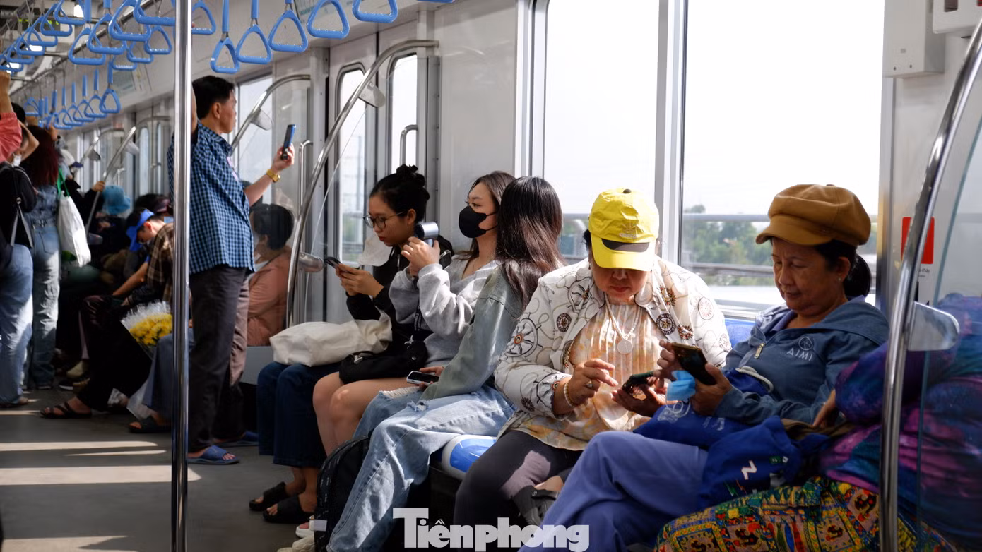 | Nhiều hành khách đi trải nghiệm tàu metro TPHCM. |