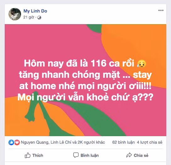 Hoa hậu Mỹ Linh kêu gọi mọi người ở nhà giữa tình hình dịch bệnh căng thẳng.