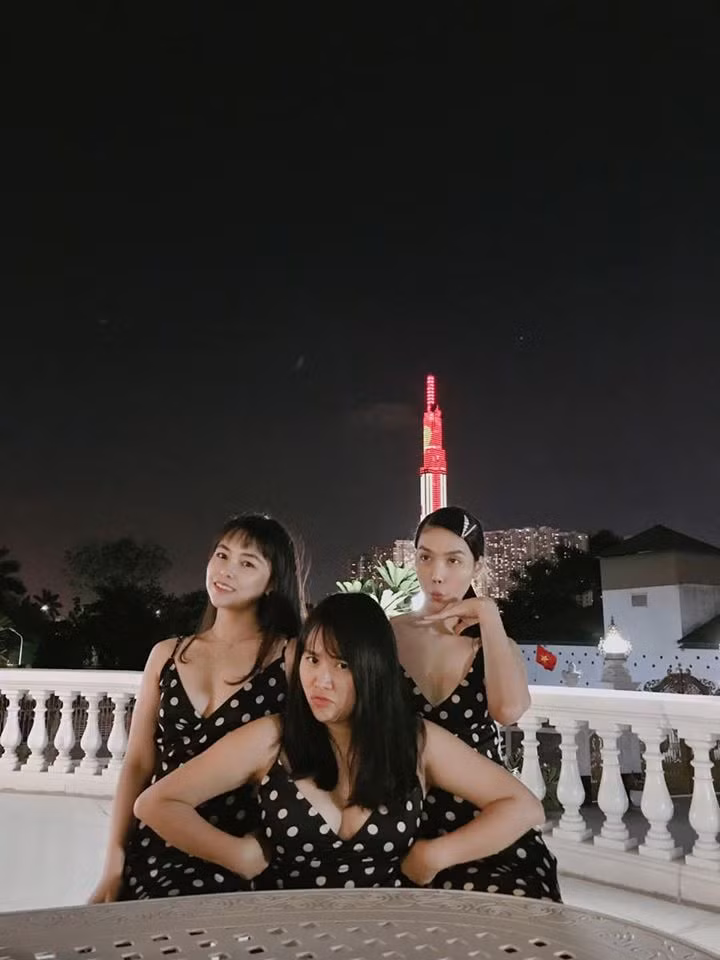 Gái một con xinh đẹp chụp ảnh nhí nhảnh bên hội bạn thân.