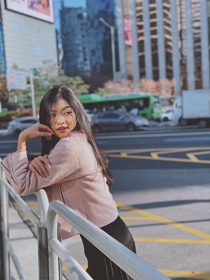 Á hậu Kiều Loan khoe vẻ xinh đẹp trên đường phố Hàn Quốc.