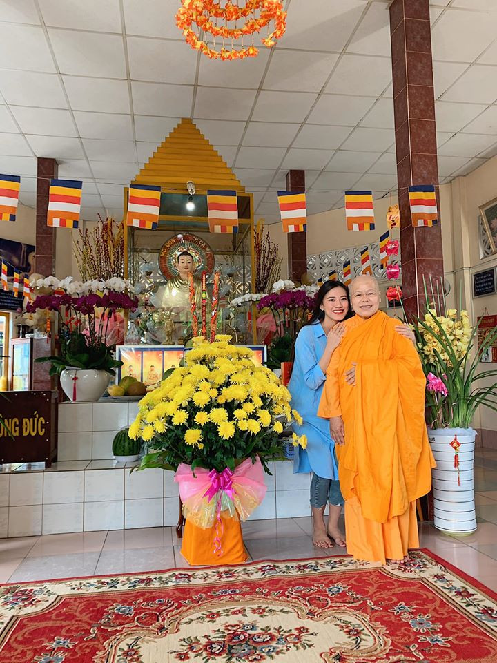 Á hậu Kim Duyên hoan hỉ lên chùa vào ngày mùng 5 Tết.