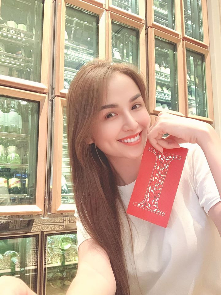 Hoa hậu Diễm Hương hào hứng vì được lì xì vào ngày mùng 5 Tết.