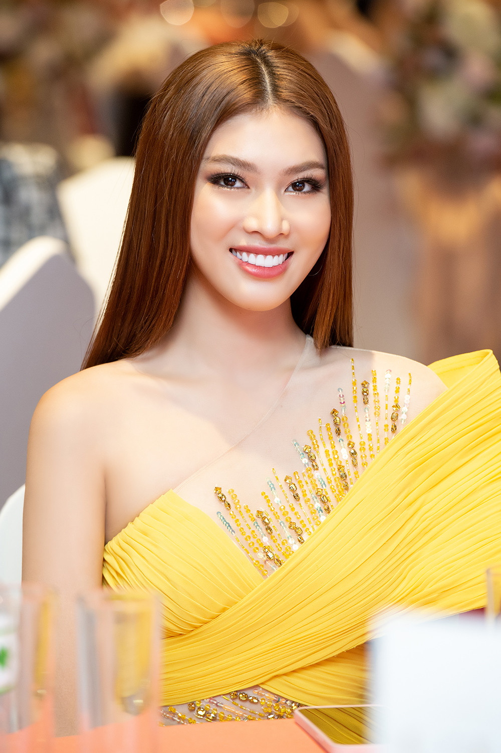 Xuất hiện tại sự kiện, Á hậu Ngọc Thảo diện bộ váy vàng rực khoe đôi chân dài 1m11 'trứ danh'.