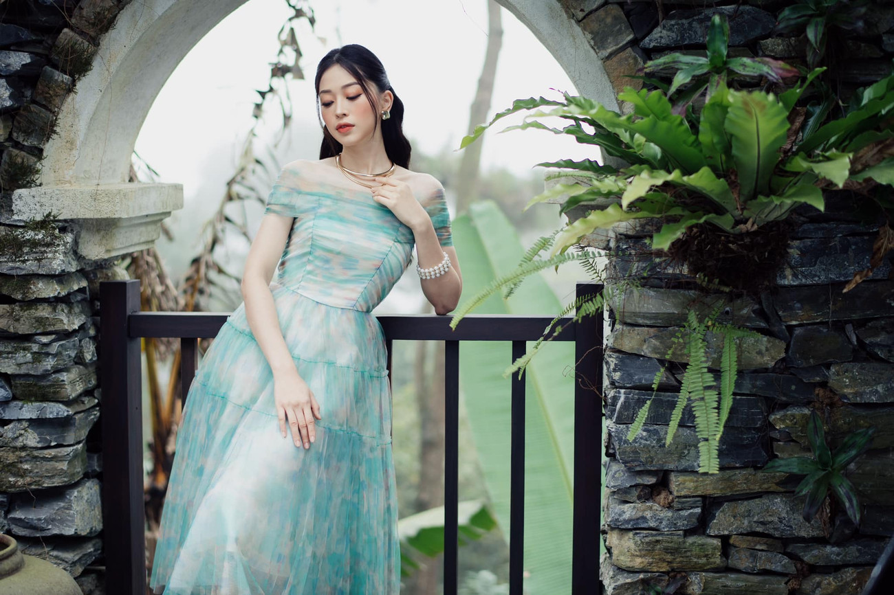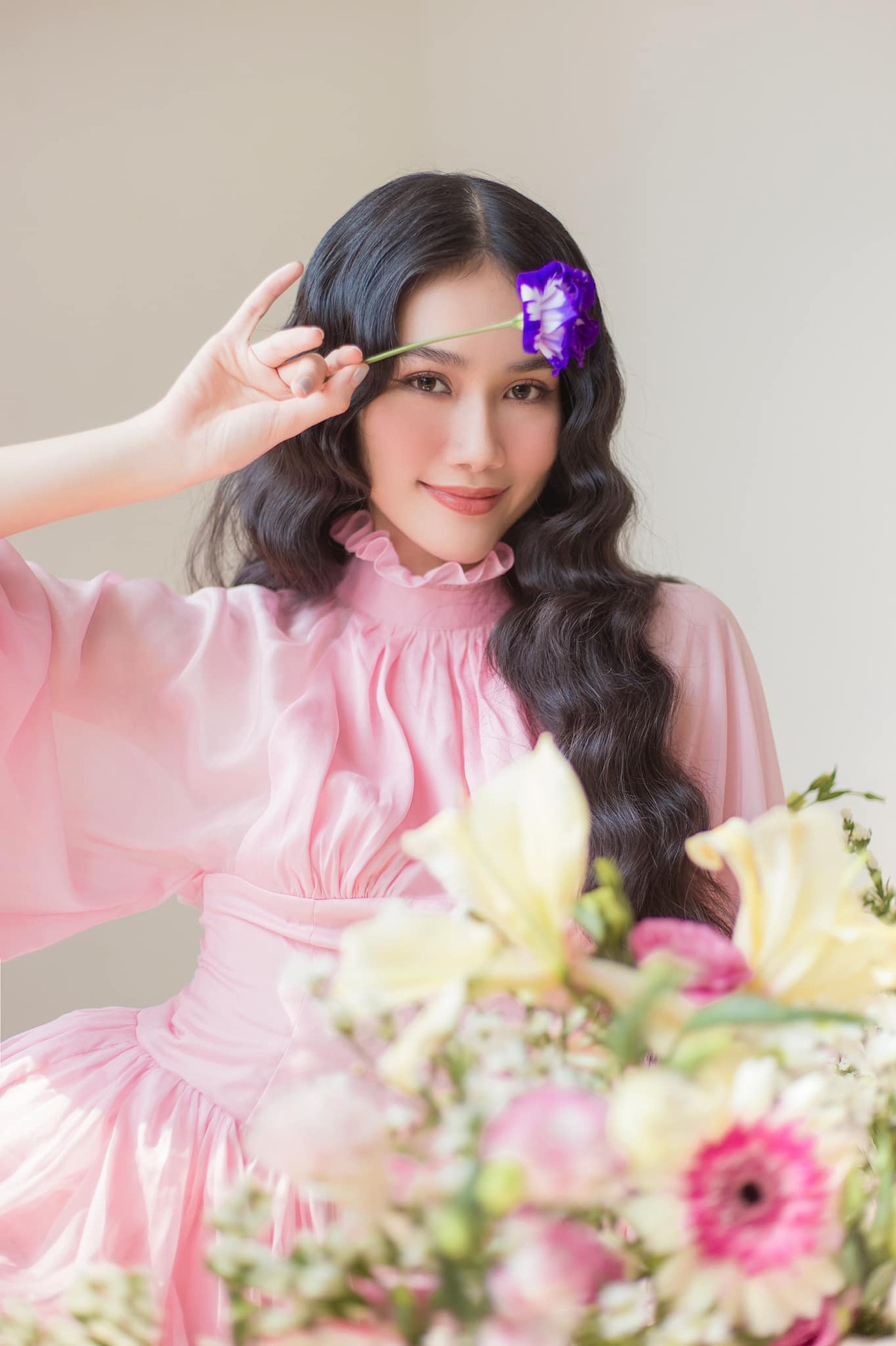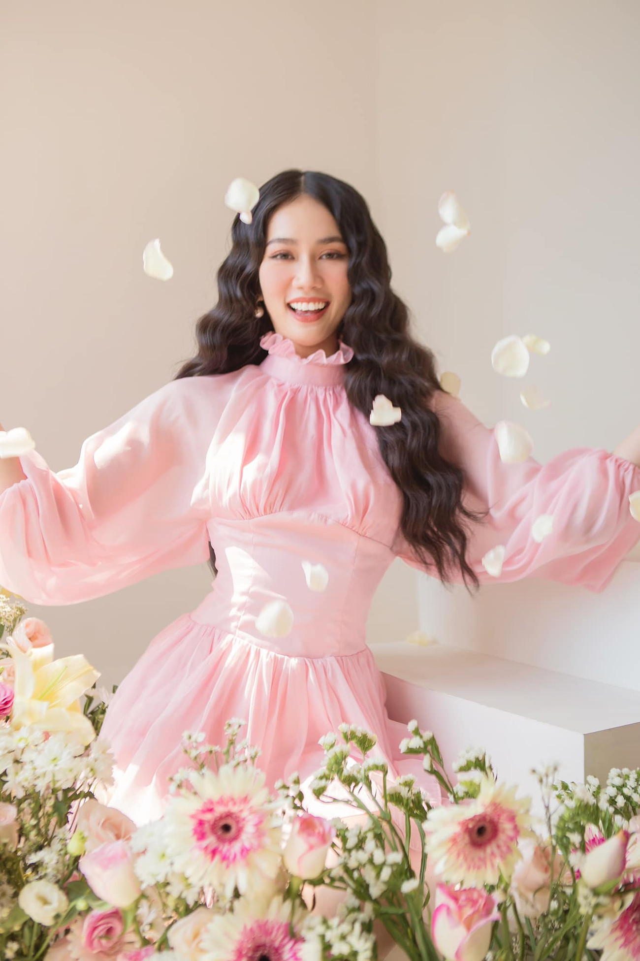 Á hậu Phương Anh đẹp mơ màng tựa 'nàng thơ' kiều diễm với bộ váy gam màu hồng pastel dịu dàng.