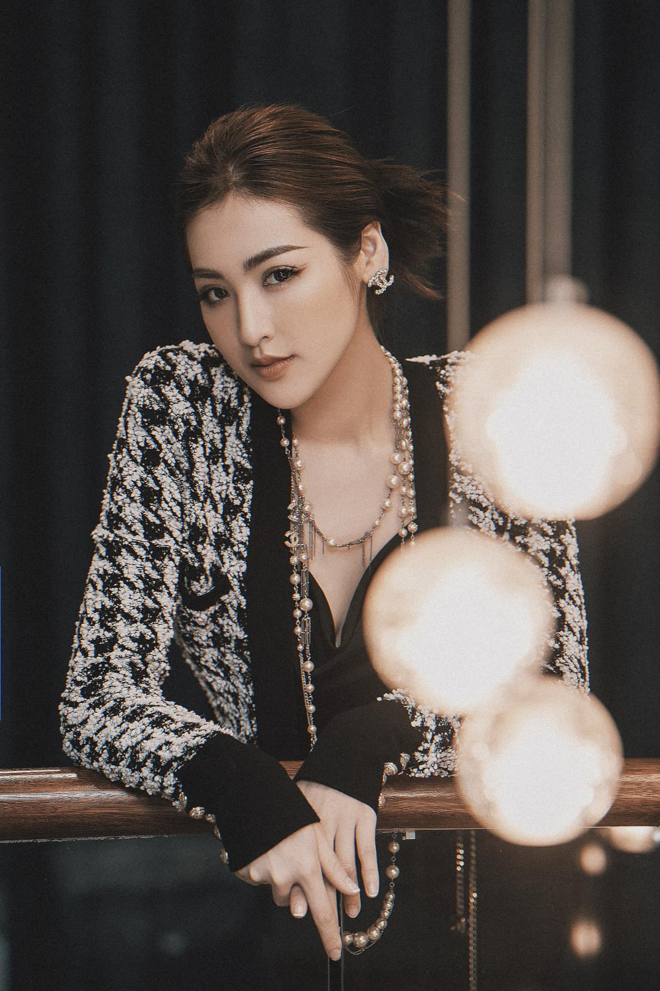 Á hậu Tú Anh đẹp sang chảnh đầy thần thái khi diện bộ trang phục thanh lịch.
