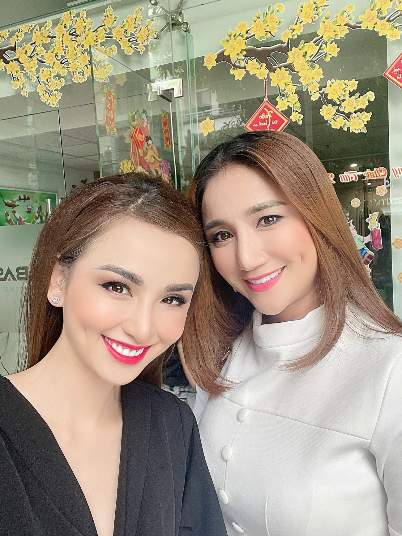 Hoa hậu Diễm Hương xinh đẹp rạng rỡ trên trường quay cùng diễn viên Cát Tường.