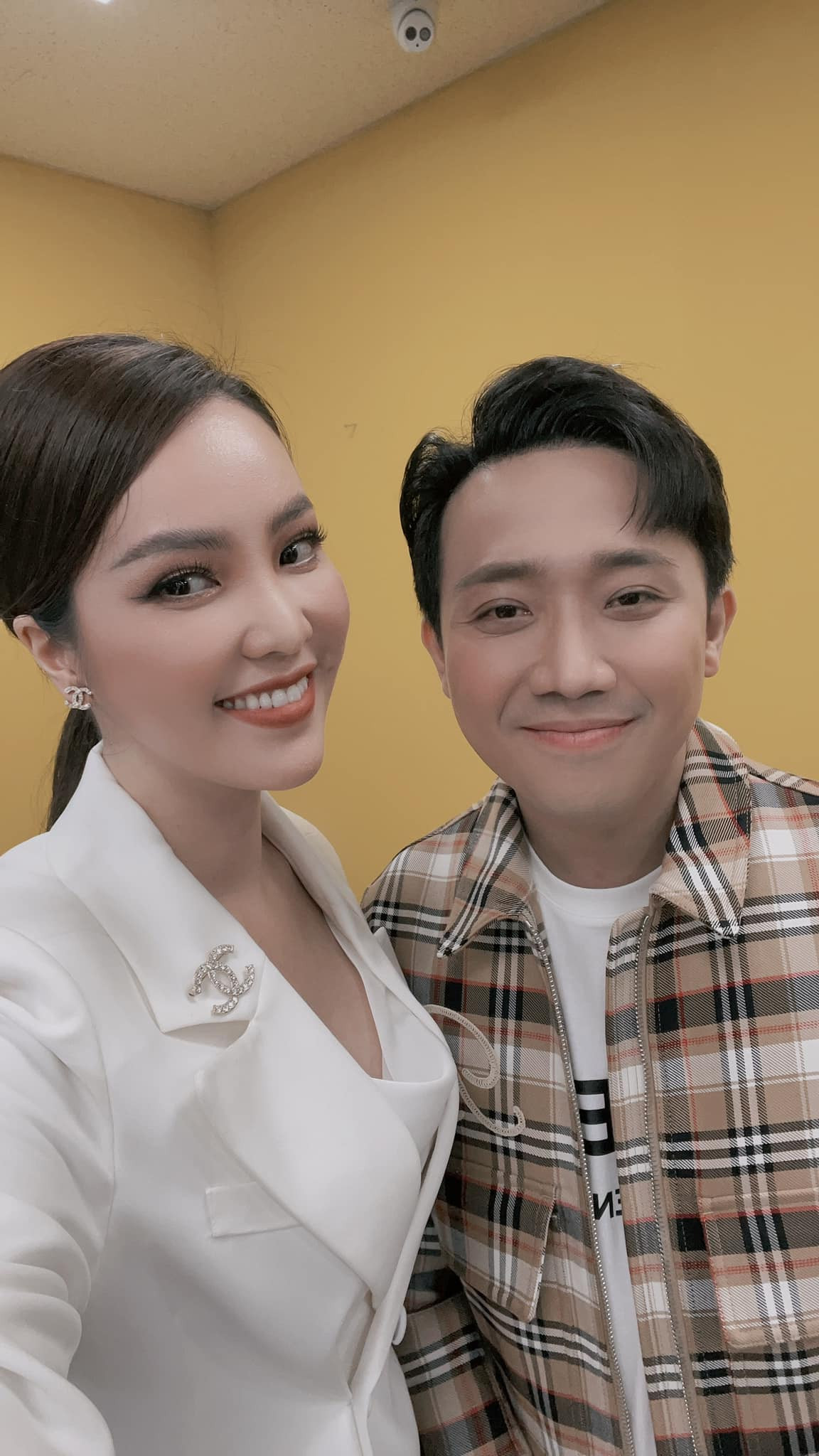 Á hậu Thuỵ Vân đón tiếp diễn viên Trấn Thành trong chương trình "Chuyển động 24h".