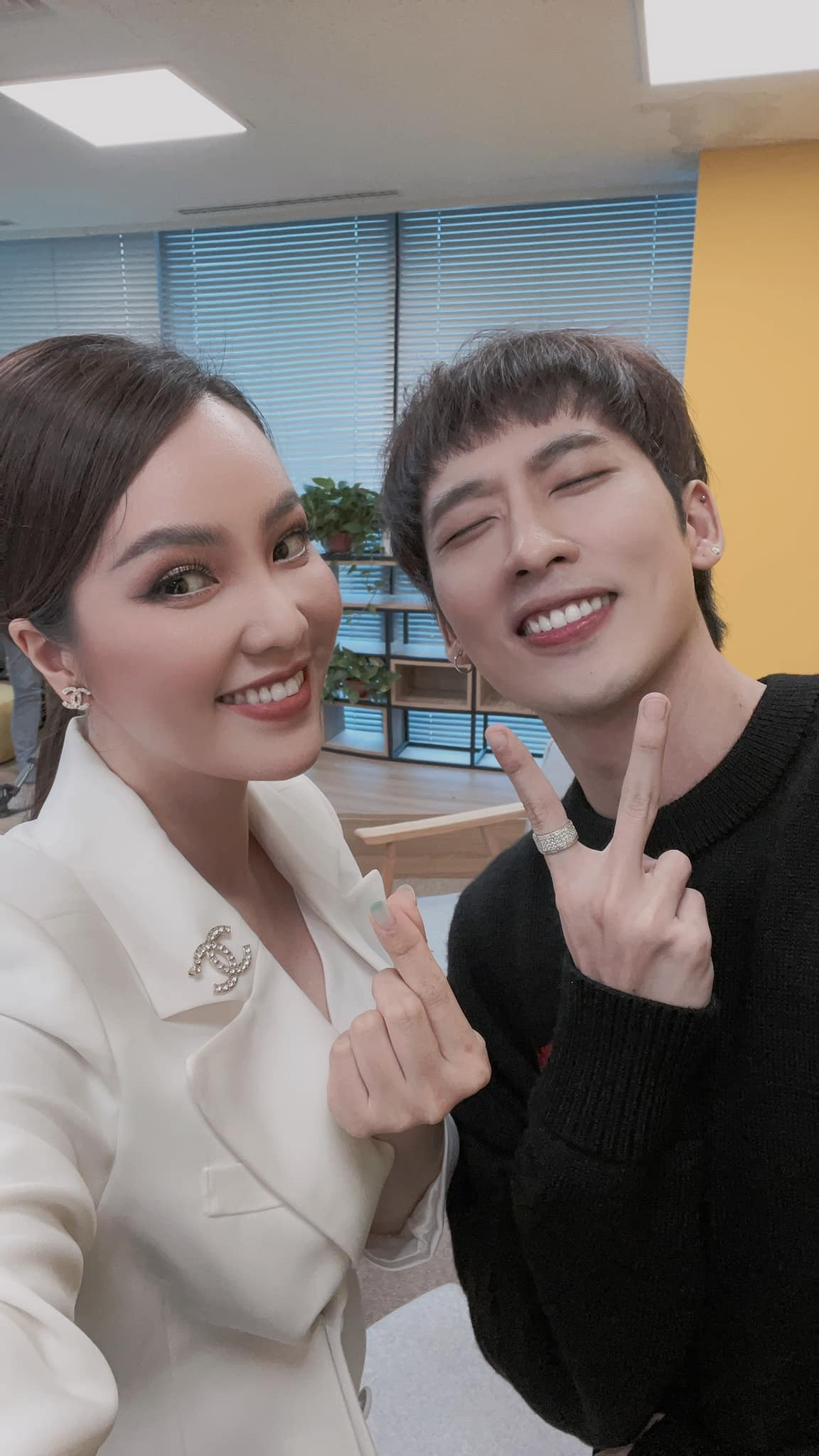 Thuỵ Vân nhí nhảnh bên diễn viên Tuấn Trần của phim "Bố già" đang gây sốt trên các rạp chiếu phim.
