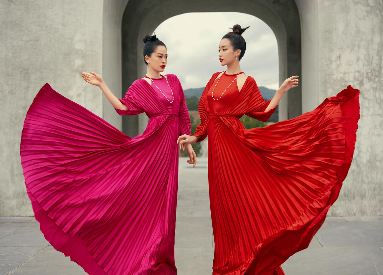 Phương Nga và đàn chị Đỗ Mỹ Linh hoá thân thành hai nàng thơ xinh đẹp, quyến rũ giữa khung cảnh thơ mộng.