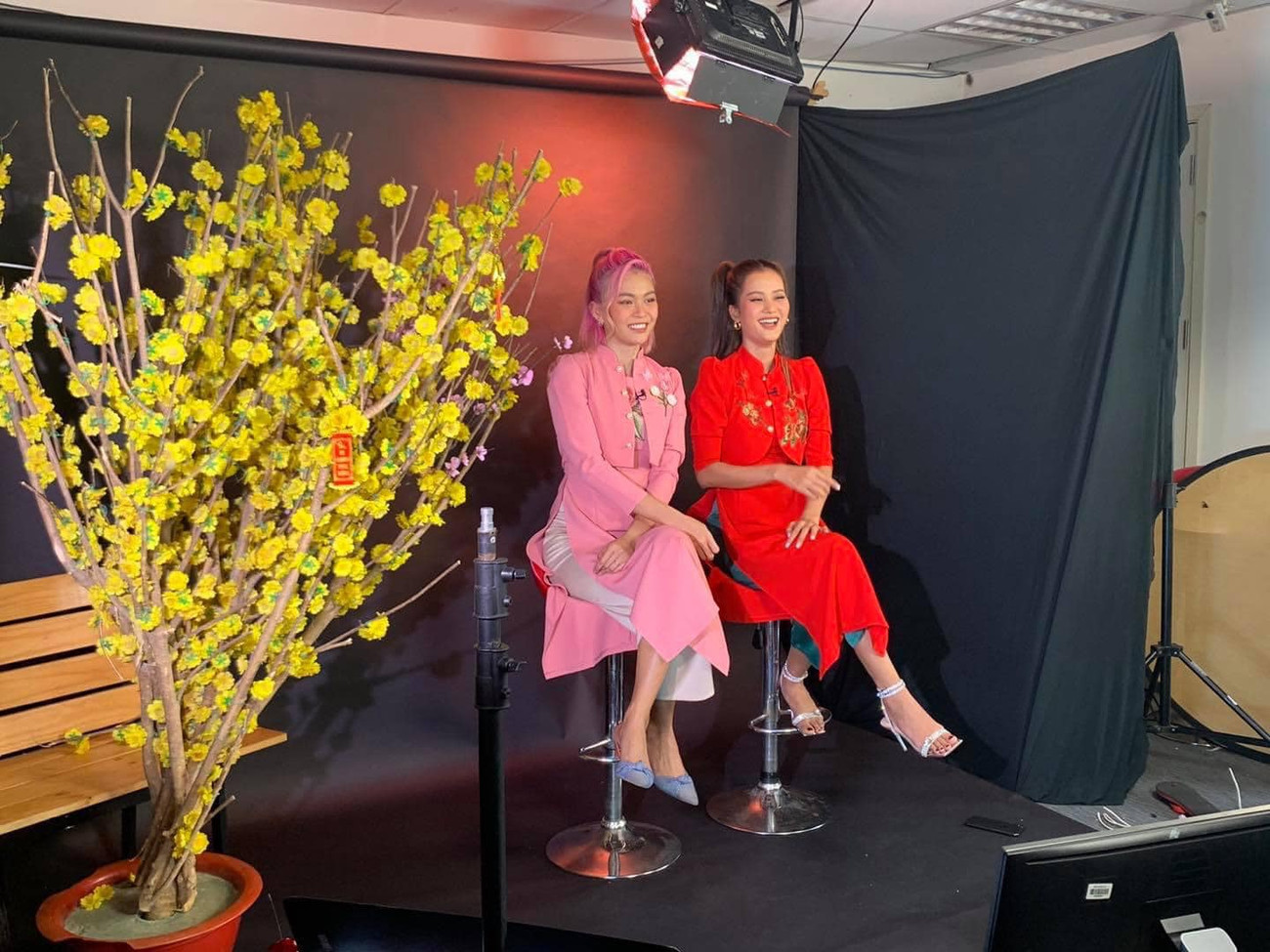 Á hậu Mâu Thuỷ và Hương Ly rạng rỡ trên trường quay Tết.