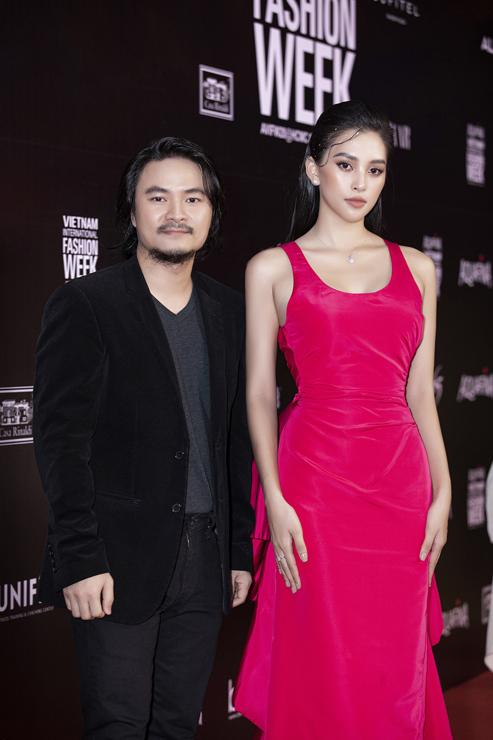 Tiểu Vy sánh vai bên đạo diễn Hoàng Nhật Nam tại sự kiện.