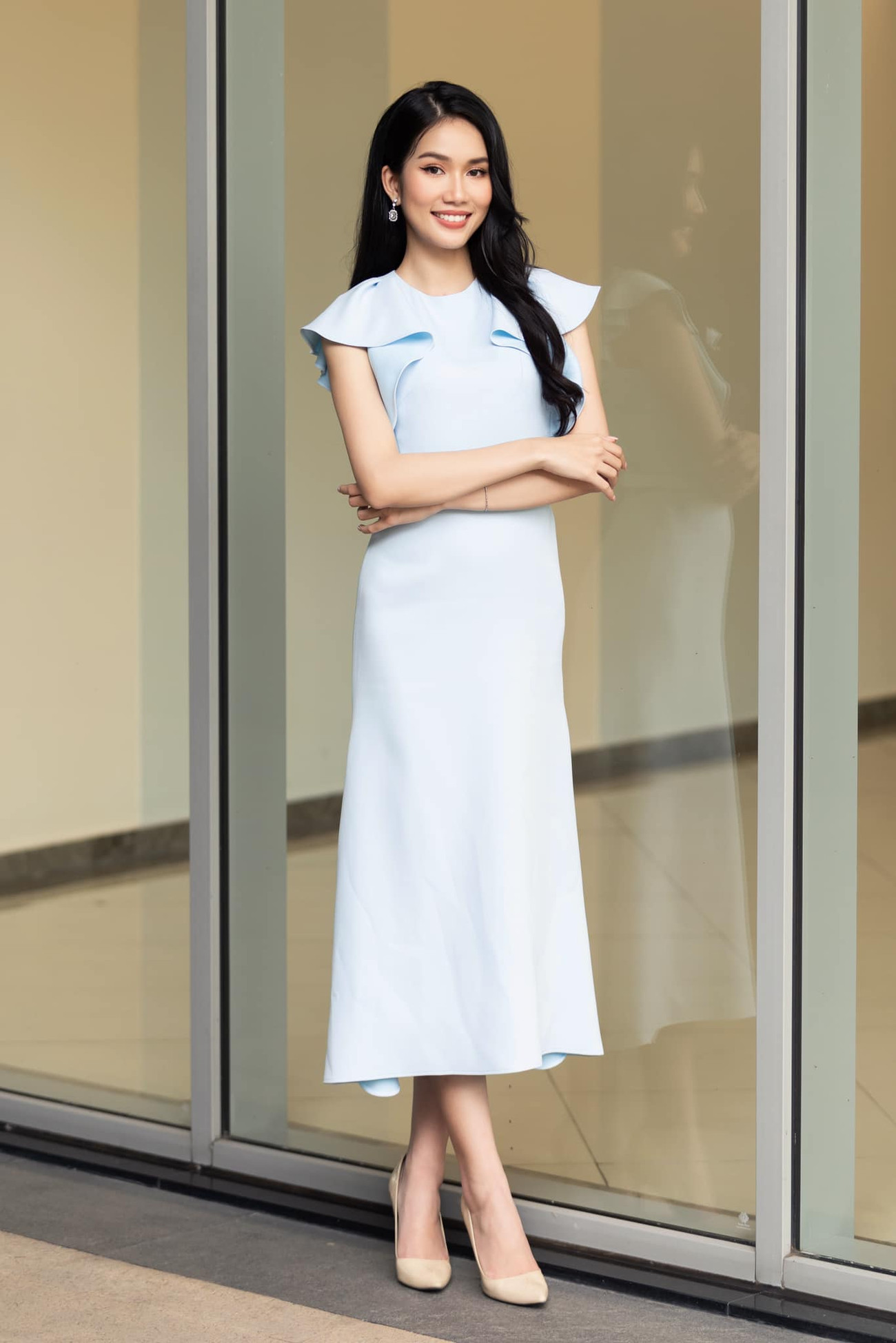 Với vẻ đẹp dịu dàng, Á hậu Phương Anh rất hợp với những bộ cánh kín đáo và nền nã.