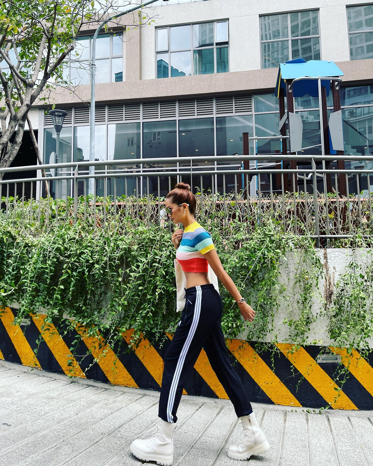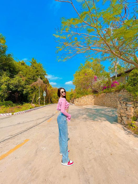 Á hậu Kim Duyên diện áo crop-top màu hồng nổi bật khoe vòng eo 'con kiến' quyến rũ.