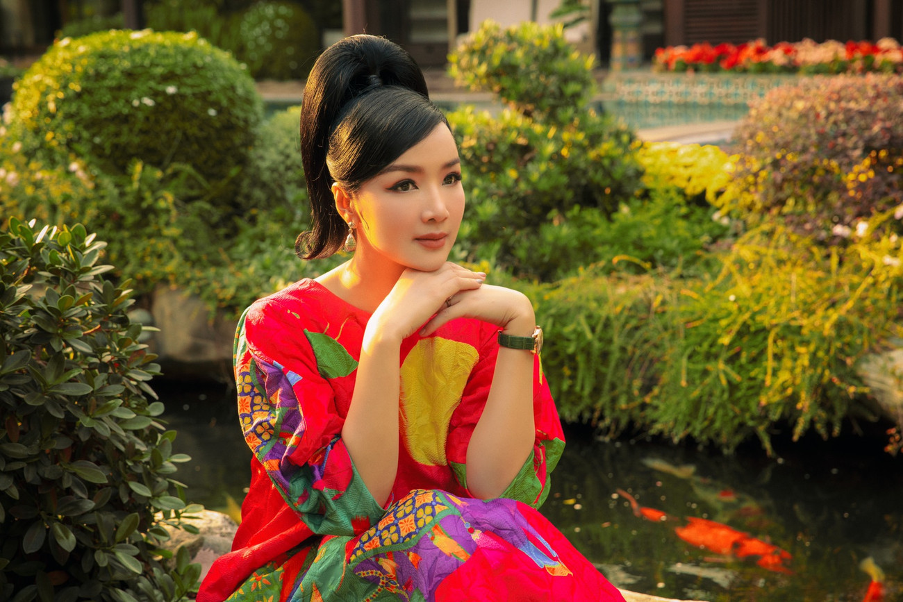 Hoa hậu Đền Hùng Giáng My khoe vẻ đẹp sang trọng, kiêu sa trong bộ váy rực rỡ màu sắc.
