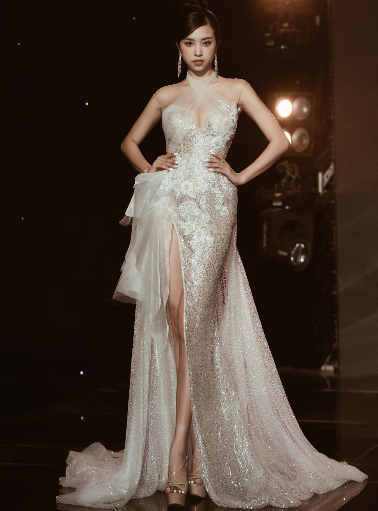 Cô diện bộ váy đuôi cá lấp lánh, khoe vẻ đẹp lộng lẫy và gợi cảm.