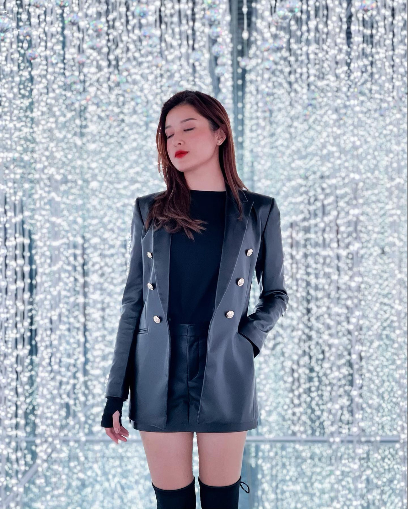 Á hậu Huyền My khoe chân dài sexy với trang phục bằng chất liệu da.