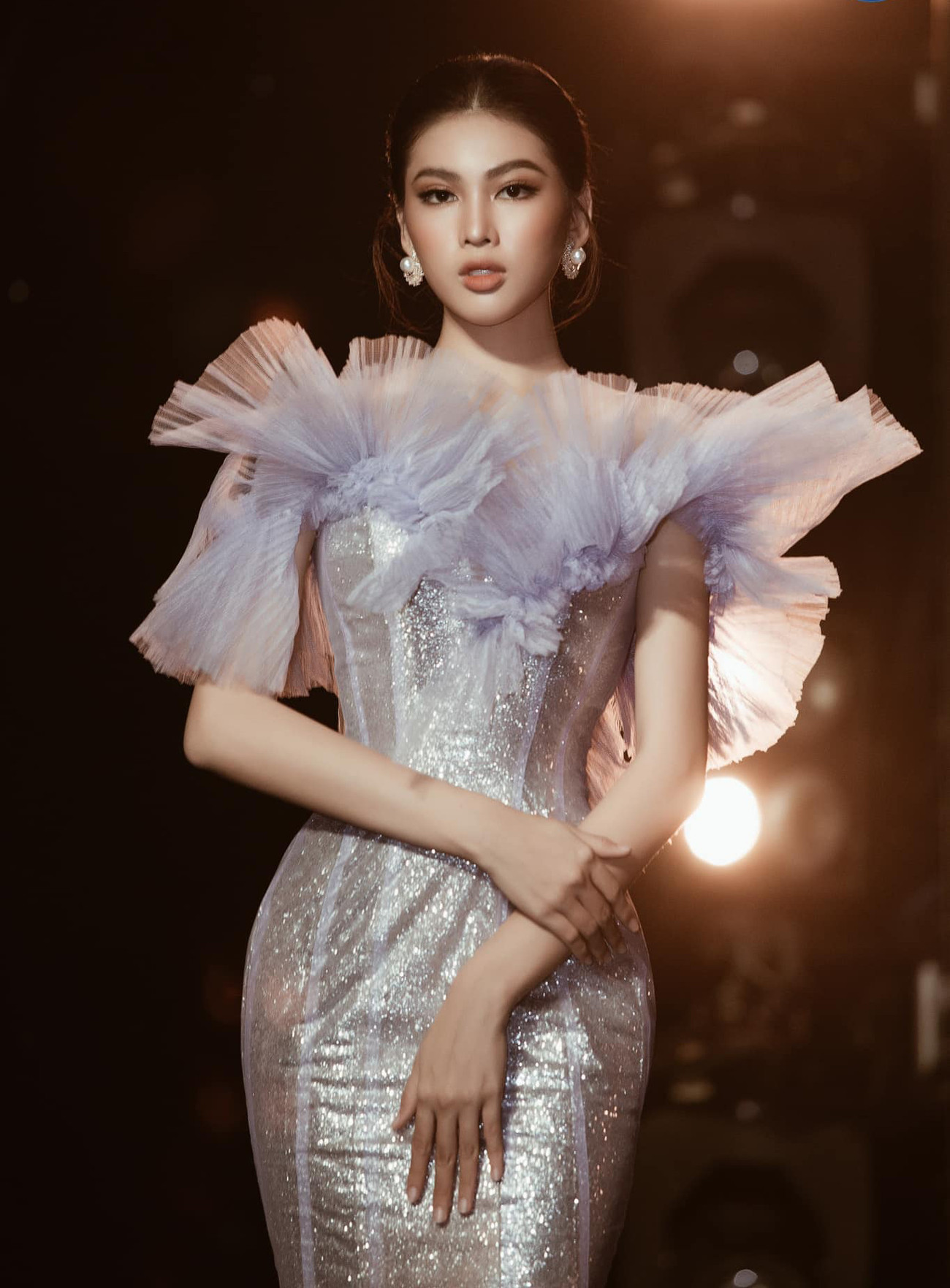 Á hậu Thúy An khoe vai trần nuột nà, quyến rũ với bộ váy dạ hội lấp lánh.