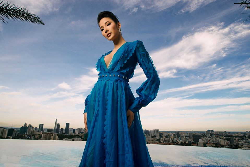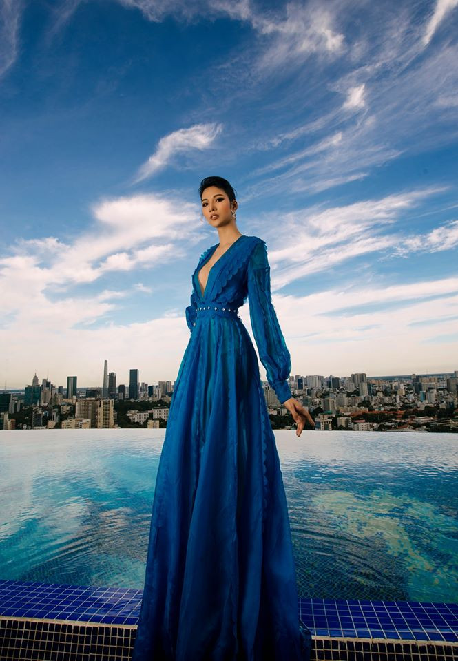 Người đẹp khoe vẻ kiêu sa, quyến rũ tựa một 'nữ thần của đại dương' với bộ váy màu xanh nước biển.
