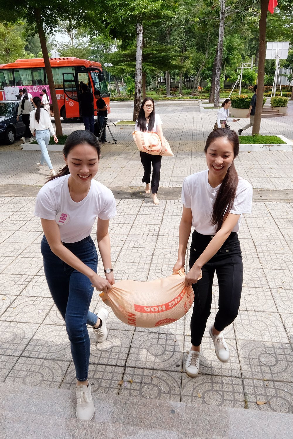 Các thí sinh Hoa hậu Việt Nam tham gia hoạt động nhân ái ngay trước thềm đêm thi Người đẹp Thời trang.
