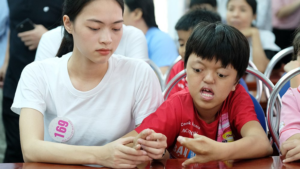 Thí sinh Lê Ngọc Trang (SBD 169) tâm sự, cô ngỡ ngàng khi biết nhiều em nhỏ đang ngồi cạnh mình là trẻ em khuyết tật. "Em trò chuyện và một lúc sau mới biết em bé ngồi cạnh mình không thể nói được, tay em cũng không cử động bình thường được. Lúc đó, em lặng người và thực sự mong muốn mang niềm vui tới cho các em. Đôi khi chỉ là cùng nắm tay nhau hát một bài hay cái ôm thật chặt"- Ngọc Trang nói.