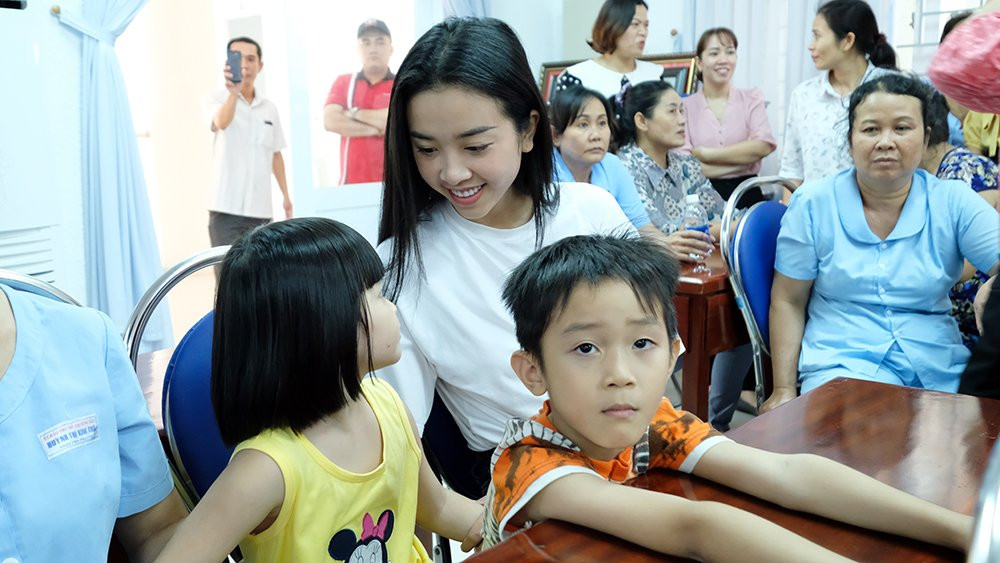 Á hậu Bùi Phương Nga bất ngờ trước sự tự nhiên và cởi mở của các em nhỏ tại đây. "Phương Nga mong muốn truyền năng lượng tích cực tới các em. Nga rất vui khi các em được quan tâm, chăm sóc một cách chu đáo. Hi vọng các em sẽ lớn lên trong tình yêu thương của cộng đồng và trở thành người có ích cho xã hội"- Phương Nga chia sẻ.
