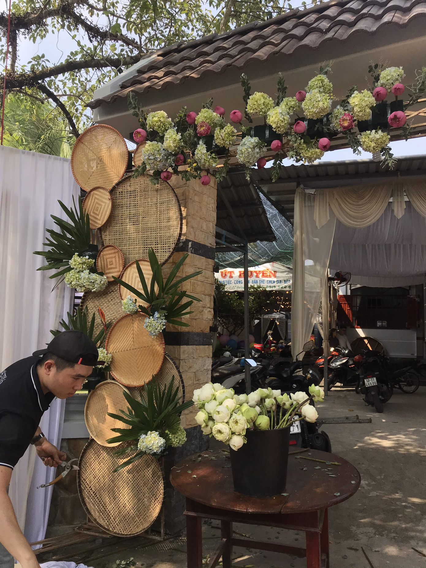 Không khí tại nhà của nàng Á hậu cũng trở nên náo nhiệt hơn vào những ngày này. Khác với thành thị, đám cưới của người dân miền Tây đa số được tổ chức và dựng rạp tại gia. Thông qua những hình ảnh chuẩn bị, có thể thấy Thuý An đặt khá nhiều tấm tư cho khâu trang trí. Đặc biệt là cổng hoa được dựng lên từ nia tre và rất nhiều loài hoa quen thuộc như hoa sen, hoa thiên điểu, hoa cẩm tú cầu, hoa hồng,...