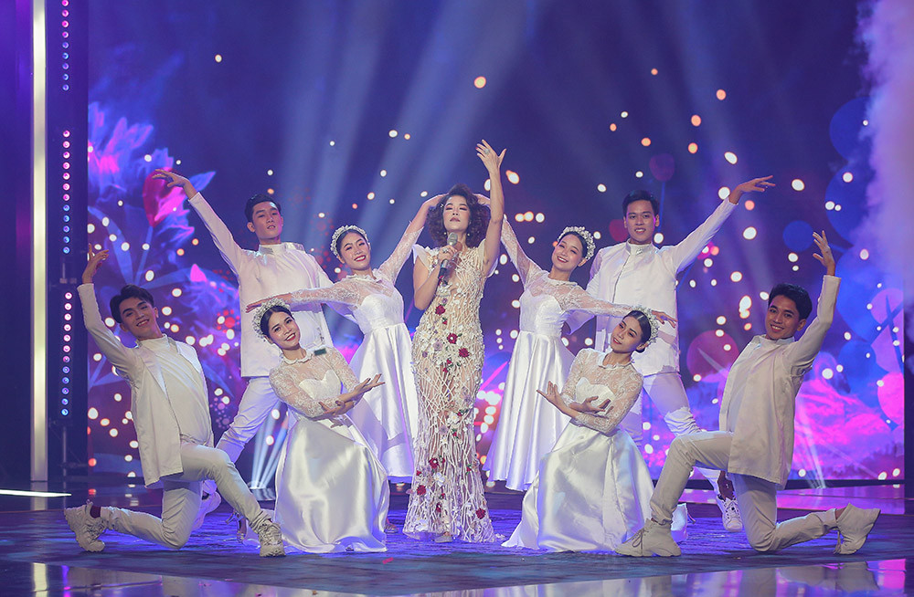 Minh Hằng biểu diễn ca khúc Những điều nhỏ nhoi trên sân khấu.