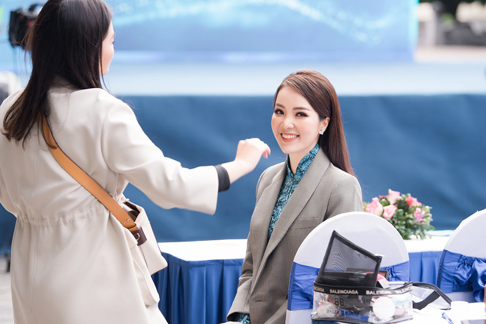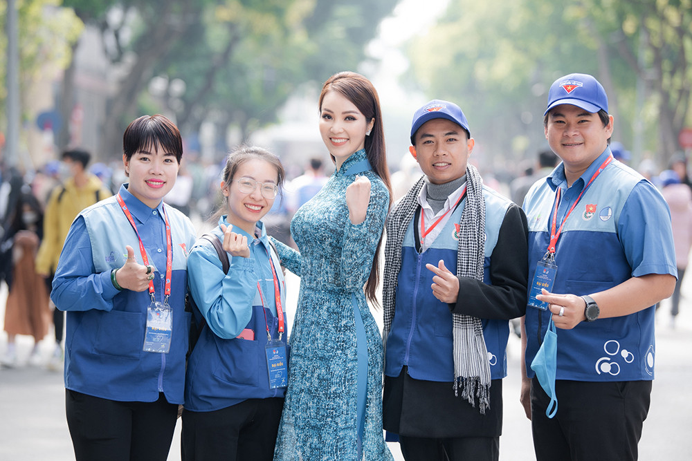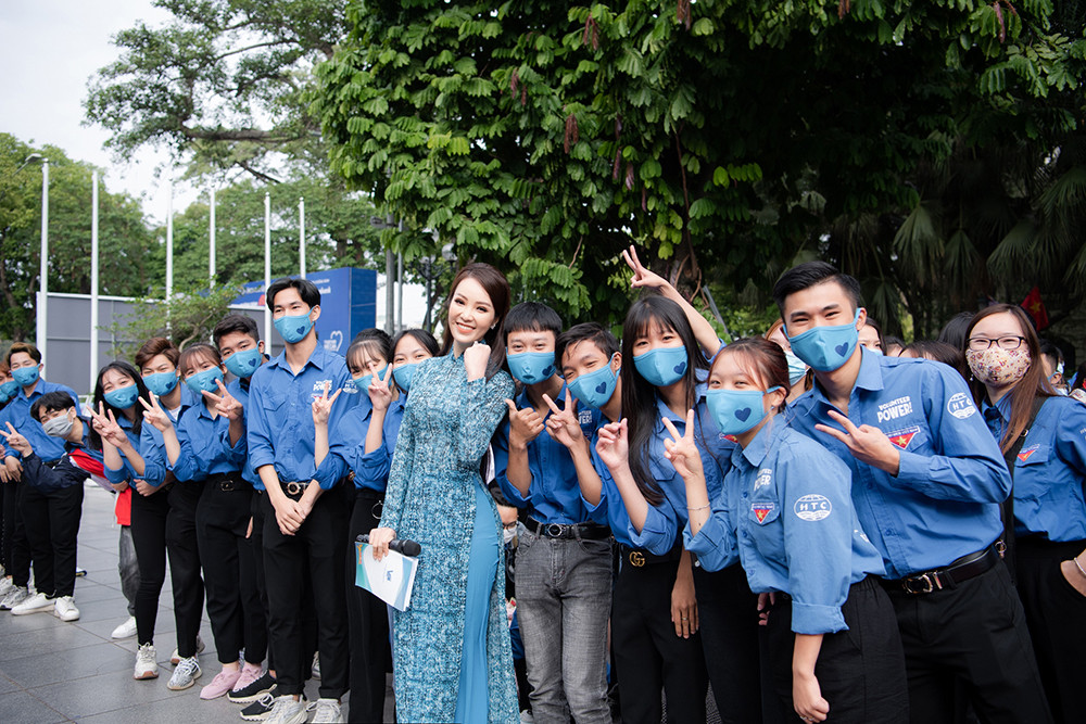 Tại sự kiện, Á hậu Thuỵ Vân được nhiều bạn sinh viên hâm mộ và xin chụp ảnh cùng.