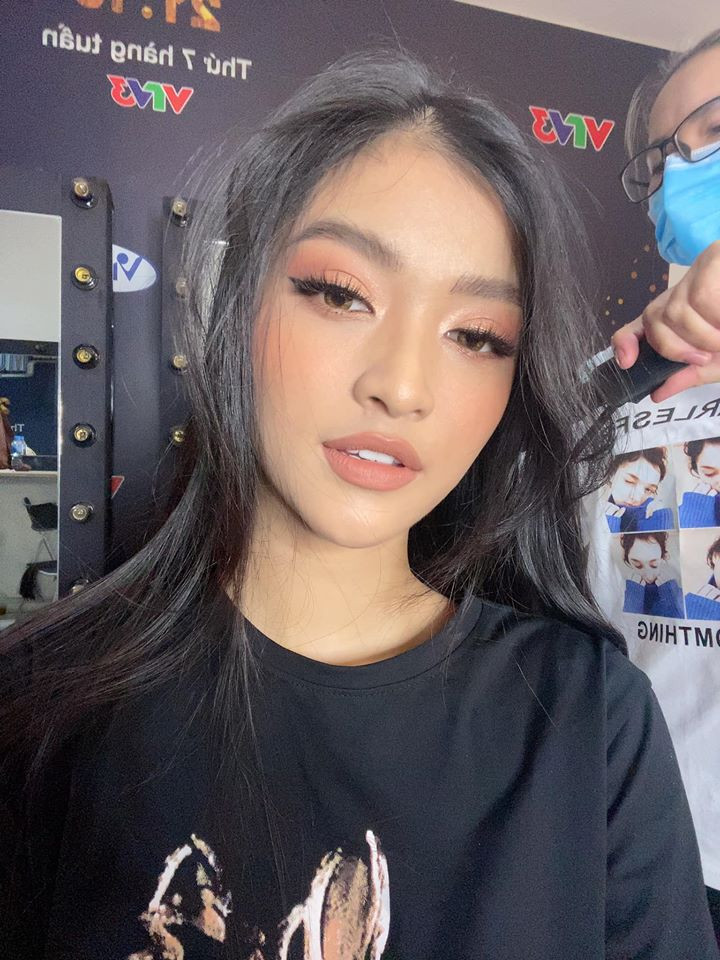 Á hậu Kiều Loan khoe vẻ xinh đẹp, yêu kiều khi đang trang điểm và làm tóc trong hậu trường.