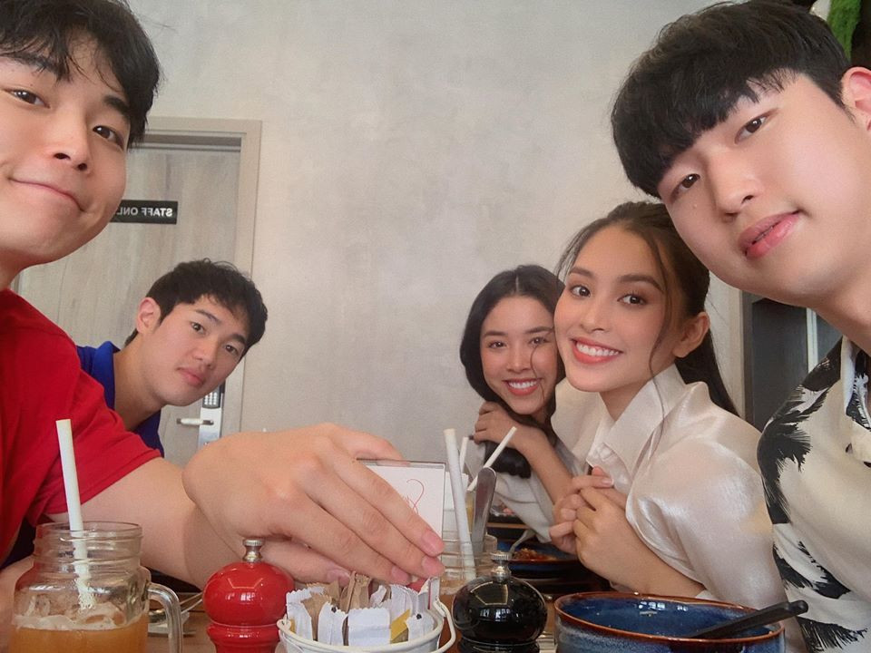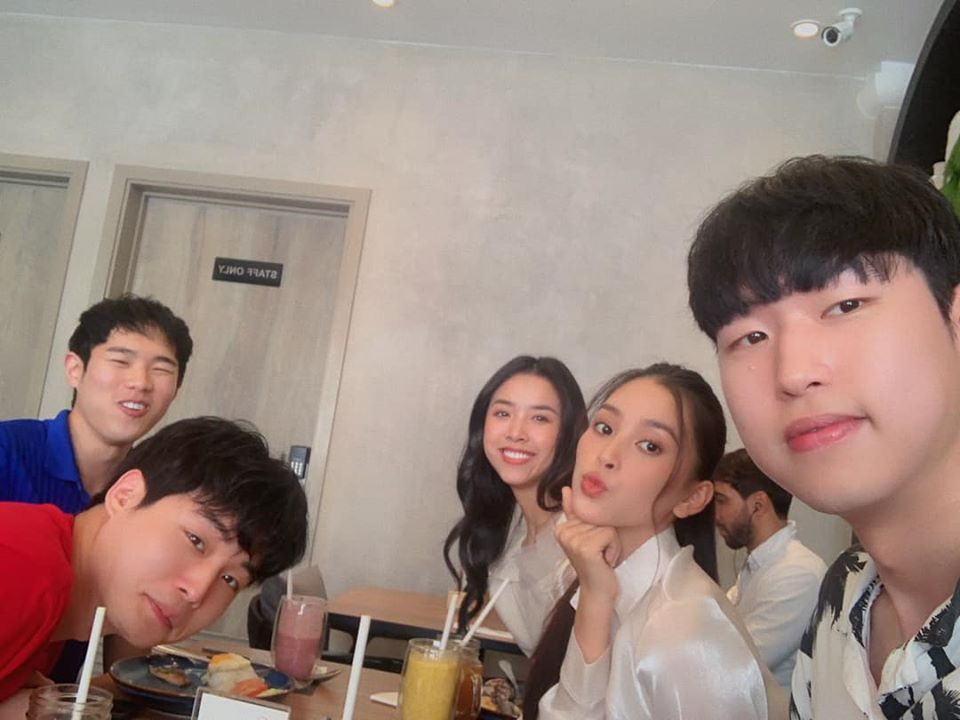 Hoa hậu Tiểu Vy, Á hậu Thuý An chụp ảnh bên những người bạn Hàn Quốc.