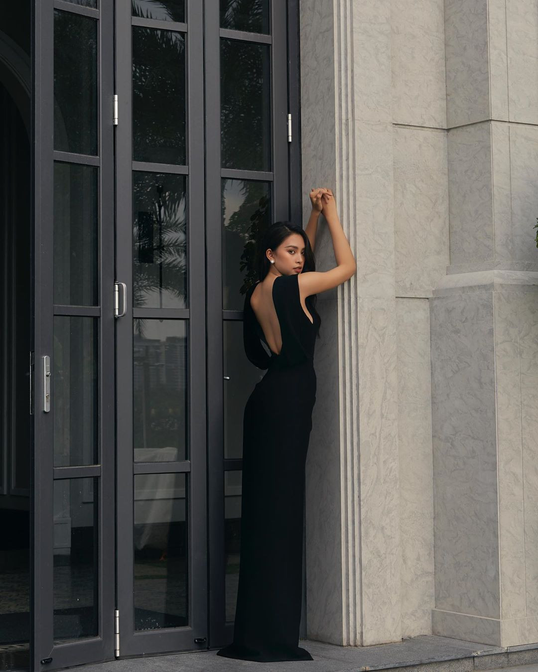 Hoa hậu Tiểu Vy khoe lưng trần gợi cảm và quyến rũ trong bộ váy xẻ tinh tế.