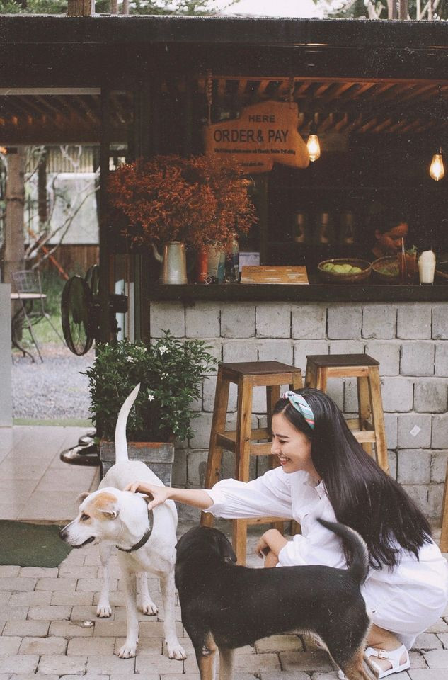 Á hậu Kim Duyên đùa vui bên các chú cún cưng.