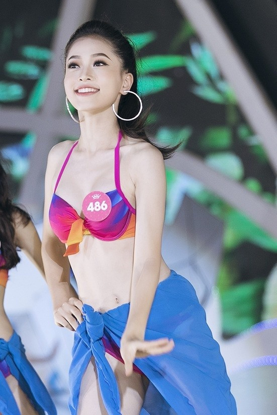Với thân hình chuẩn gợi cảm, Tiểu Vy từng lọt top 3 Người đẹp Biển cùng thí sinh Đặng Thị Trúc Mai và thí sinh Nguyễn Hoàng Bảo Châu (SBD 169).