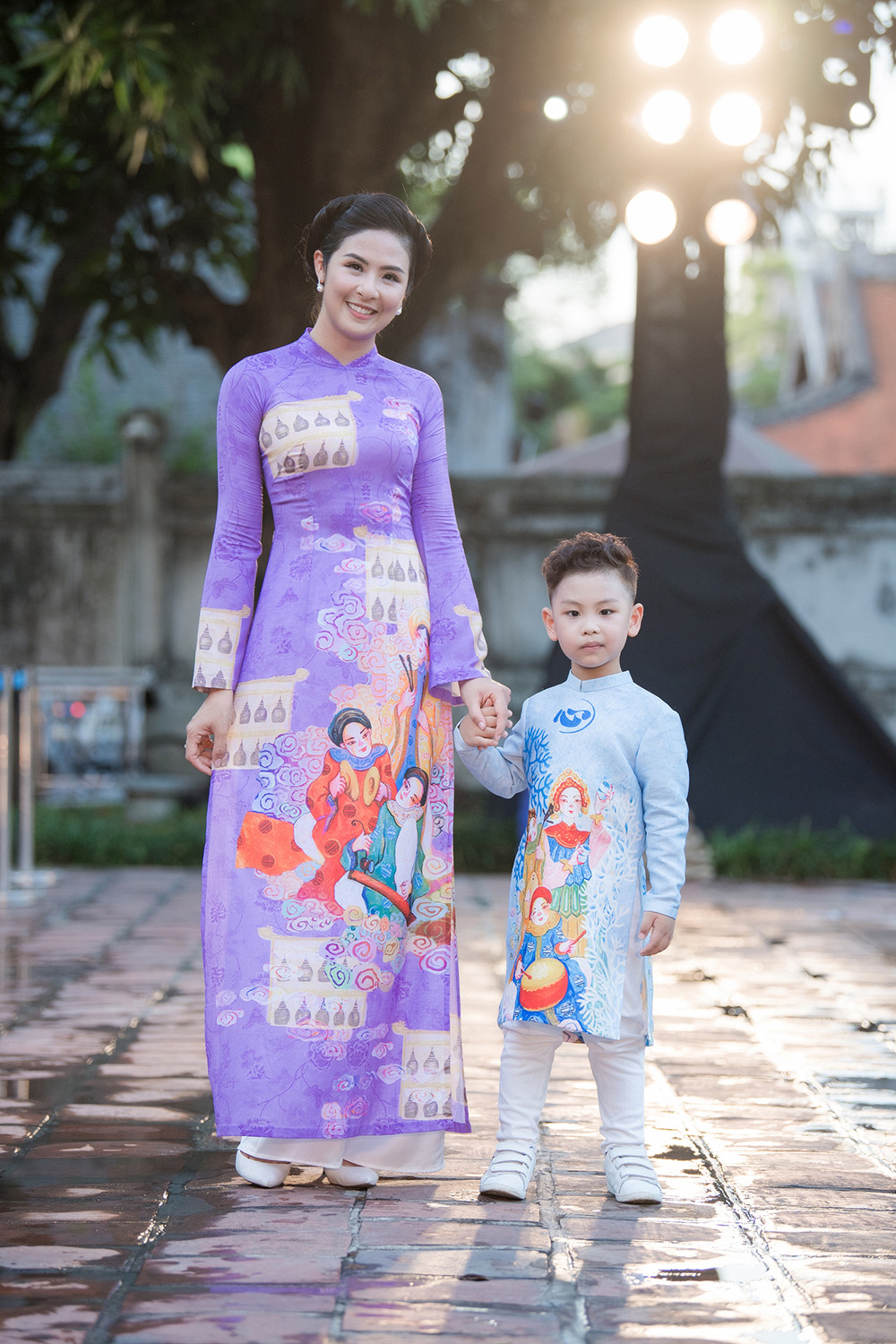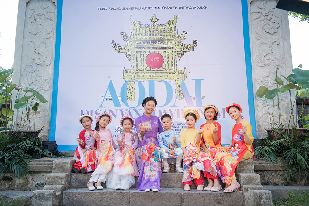 Trong chương trình ‘Áo dài – Di sản văn hoá Việt Nam’, Ngọc Hân mang đến bộ sưu tập “Nhã nhạc cung đình Huế” với các mẫu áo dài dành cho cả người lớn và trẻ em.