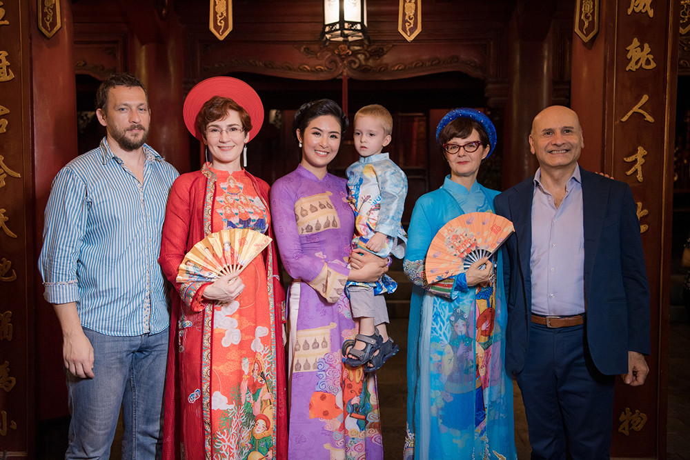 Tham gia trình diễn bộ sưu tập cho Ngọc Hân ngoài những model chuyên nghiệp, model nhí còn có bà Paola Belfiore (áo dài xanh), Phu nhân đại sứ Italy tại Việt Nam; bà Nataliya Zhynkina (áo dài đỏ), Đại biện lâm thời Đại sứ Ukraine tại Việt Nam.