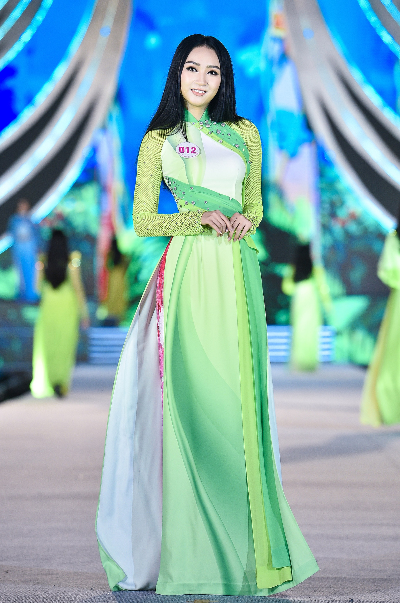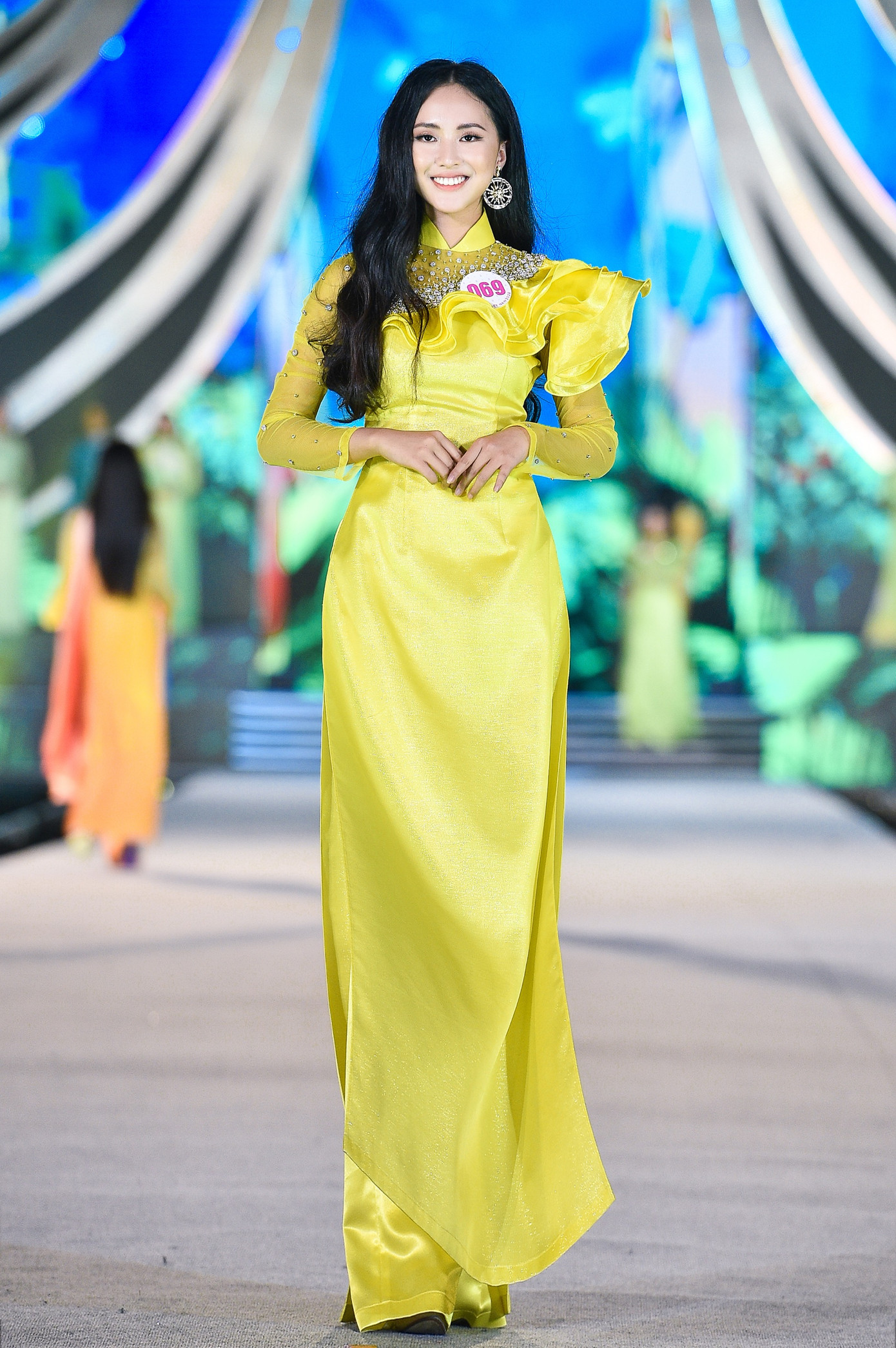 Các thí sinh HHVN 2020 khoe vẻ đẹp duyên dáng trong phần trình diễn áo dài.