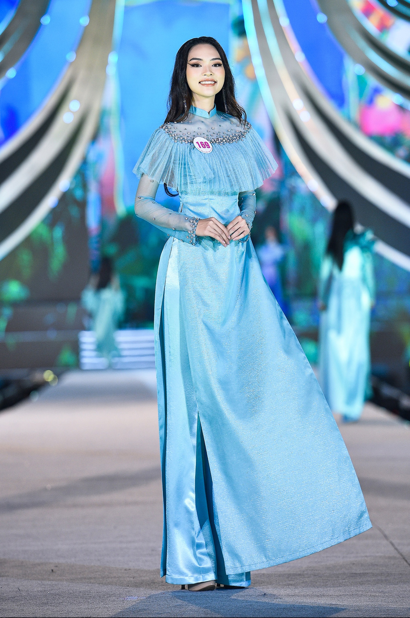 Bên cạnh đó, các cô gái xuất sắc của TOP 35 còn có màn trình diễn áo dài với chủ đề về biển cả đến từ BST của NTK Ngô Nhật Huy. Đây cũng chính là cách mà Hoa Hậu Việt Nam tôn vinh vẻ đẹp thần tiên của thành phố biển Vũng Tàu và gửi lời tri ân sâu sắc nhất đến thành phố này vì đã đồng hành cùng cuộc thi trong chặng đường cuối của hành trình đi tìm chủ nhân vương miện năm nay.