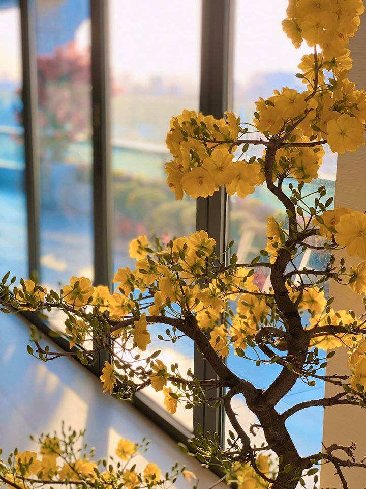 Nhà của Thu Thảo còn chơi hoa mai vàng rực rỡ, mang lại may mắn cả năm.