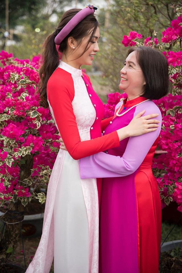 Á hậu Lệ Hằng và mẹ diện áo dài đi ngắm chợ Hoa.