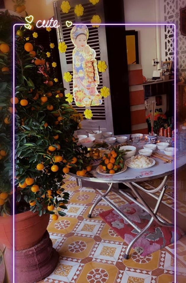 Mâm cúng tất niên cũng đã được Tiểu Vy tự tay sửa soạn.