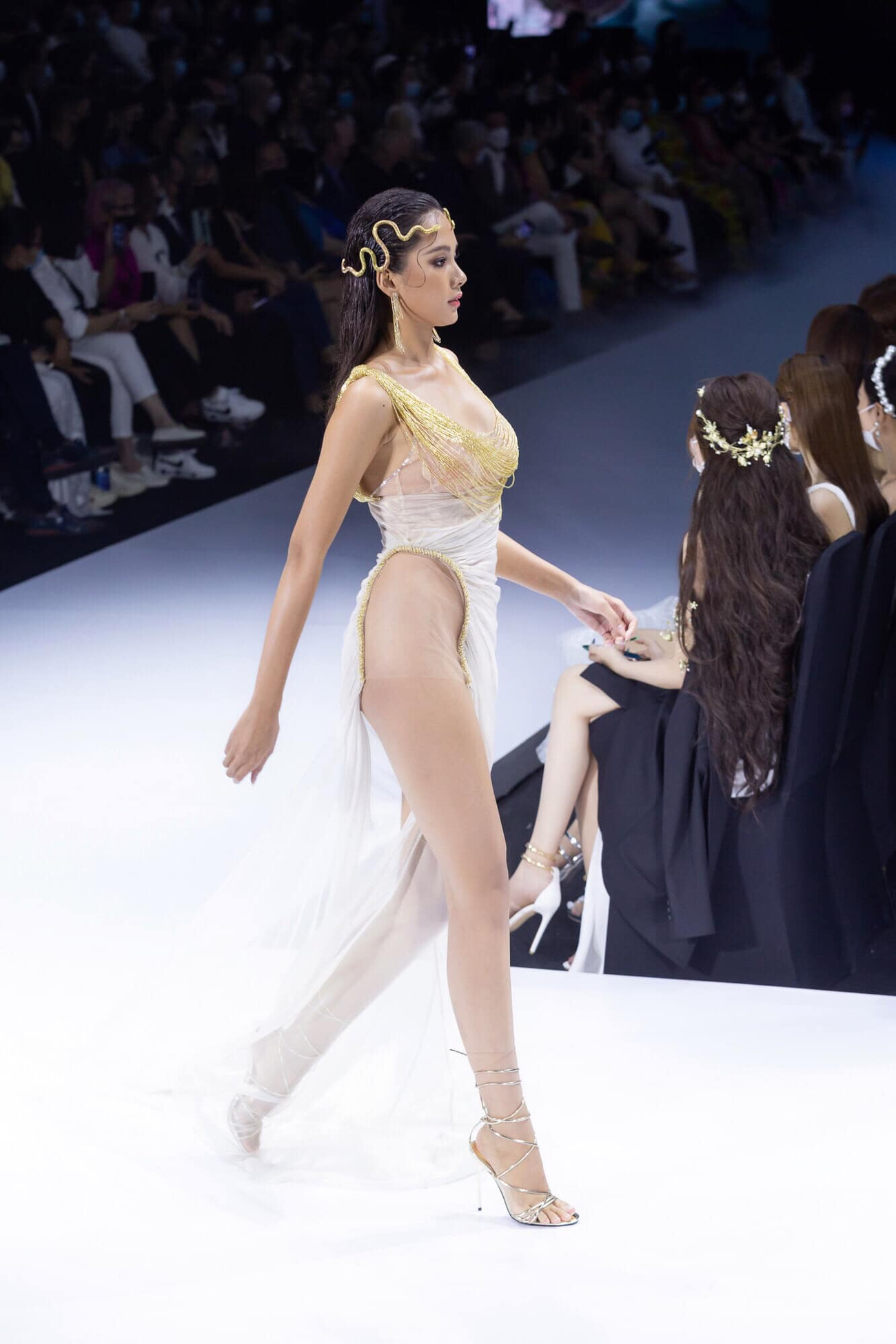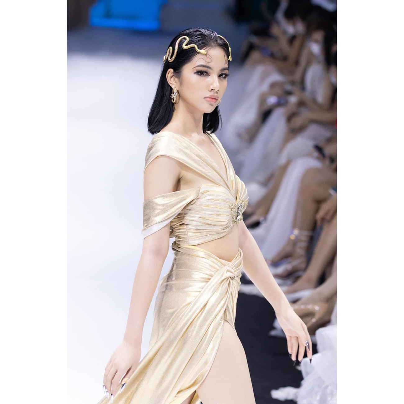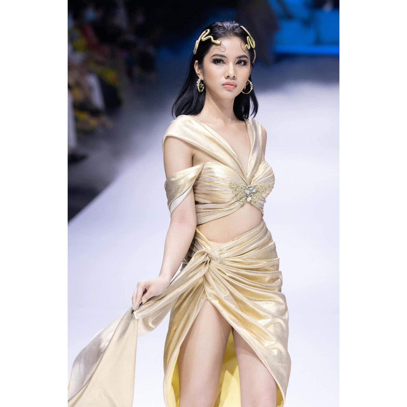 Dù mới 18 tuổi nhưng Cẩm Đan tự tin trình diễn trên sàn catwalk.